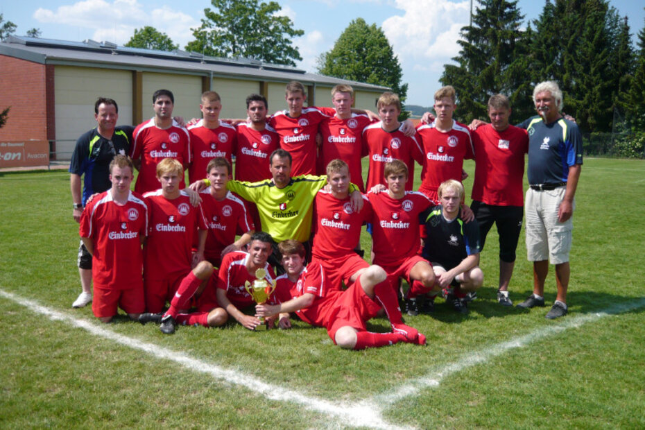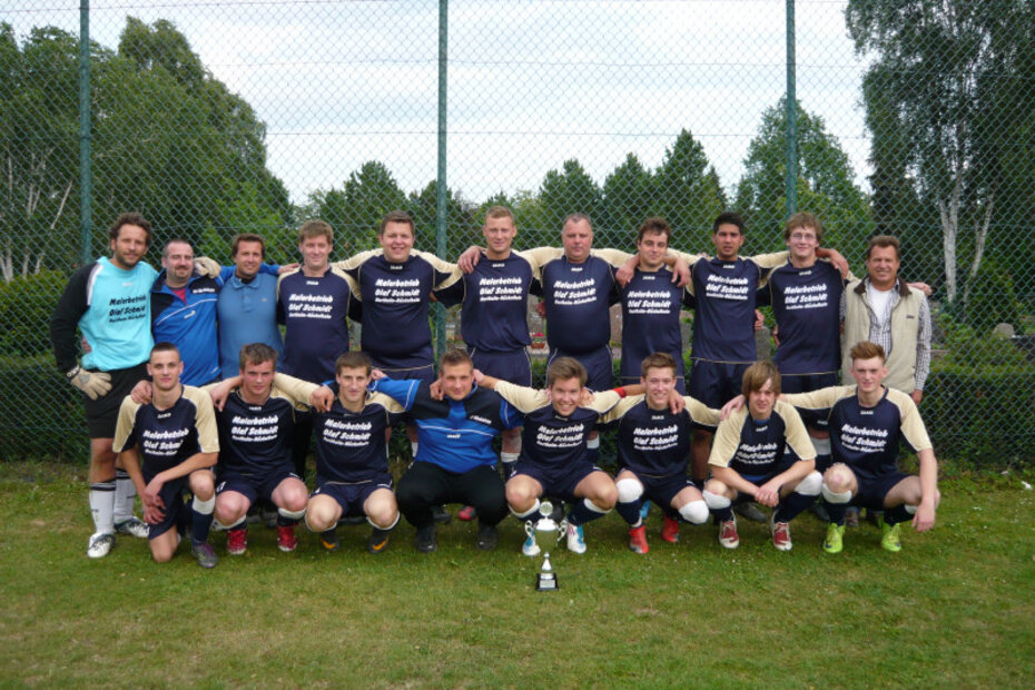 Vorn mit Pokal: Betreuer Florian Wegener