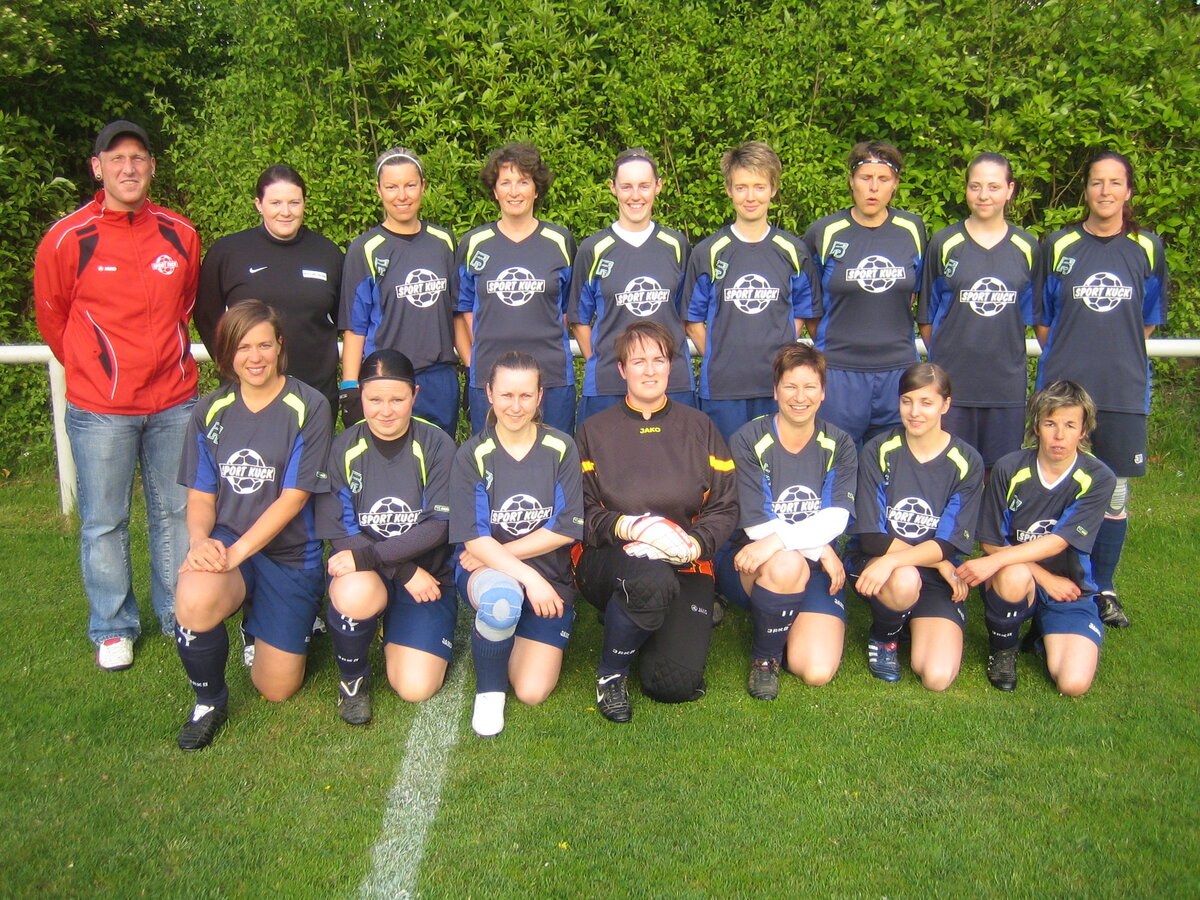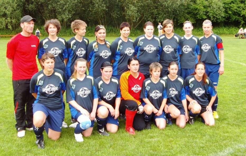 Hinten von links: Trainer Markus König, Christiane Stichnoth, Katharina Warnecke, Nina Hohmann, Yvonne Fricke, Tanja Limburg, Jessica Summer, Christin Beulshausen, Corinna Dörger.