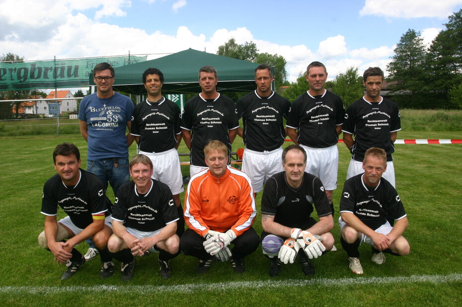 Stehend von links: Staffelleiter Uwe Achtermann, Carsten Meinecke, Steffen Junge, Arndt Dech, Bernd Hornig, Martin Rode, Rico Reimann, Axel Maßmann, Betreuer Martin Schneider, Trainer Artur Reese.